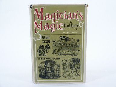 | Trost Collection with personal book pocket and card in rear. Paul Curry, 1965, cloth bound with gilt stamping, 269 pages including index, illustrated. Contents: By Way of Background, The Old, Old Tricks, The Magician's Image, Houdini - and After, The New Conjurers, What became of Gravity?, Into thin Air, Out of Nowhere, Ties That Do Not Bind, The Power of Thought, Of Things to come, The Quick and the dead, The Mind Reels. Condition light soil to page edges, very good. | |