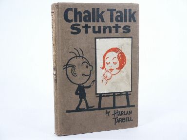Chalk Talk Stunts, Harlan Tarbell, 1926, hard bound, 100 pages, illustrated. Contents: Evolution Pictures, Upside Down Stunt, Easy Human Figure Drawing for Chalk Talks, A Novelty Telephone Stunt, The Ax and the Executioner, The Rabbit and the Lanterns and more. Condition soil to cover, previous owner's signature, color chalk throughout on various pages not affecting reading. Very good. | |