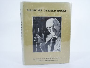 The Magic of Gerald Kosky, Gerald Kosky, pictorial hard bound with gilt stamping, 1975, Limited Numbered Collector's Edition (152 of 500), Autographed, 247 pages, photos and illustrations. Contents: Effects with cards, card spelling, poker and bridge deals, 4 ace effects, coins, mental effects, E.S.P. tests, magazine and book tests, psychic-type tests, over the telephone tests and miscellaneous tricks. Condition previous owner's book plate, light foxing along top edge of pages. Very fine. | |