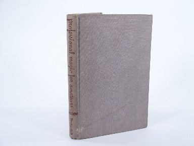 Professional Magic for Amateurs, Walter B. Gibson, 1947, cloth bound, 225 pages, illustrated. Contents: Close-Up Magic, Simplified Card Tricks, Card-Table Magic, After-Dinner Magic, Party Magic, Mental Magic, Famous Stage Illusions. Condition stain and markings to cover, previous owner's signature and label. Very good. | |