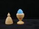A precious and very fine piece with a multi layer effect and a challenge for whomever stood at the lathe and made this. Standing 3 5/8" high the vase is opened to reveal a small red bird egg. Closing the vase and opening again it is seen to have changed to a blue egg. Once more it is closed and opened now revealing a white egg. Closing once more and opening the white egg is seen to have vanished completely or a small article has made its appearance within. This is in first rate collector's condition. | |