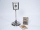 This quality apparatus by Petrie Lewis Manufacturing is of nickeled metal and stands 10 3/4" high and has a weighted base for steadiness in operation.