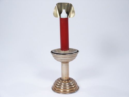 What a beautiful effect this must have been to witness in performance as a candle in a stand upon the performers table is lit after which it floats mysteriously up and around only to return gently to the holder. Now the candle rises but this time with the stand as well! This is a quite scarce piece of apparatus and comes with 2 pages of illustrated instructions in German language. Condition very good. | |