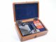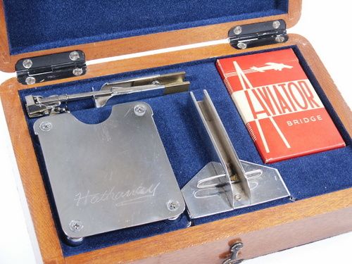 Many others have come after this model but none have been so nice or quality made as this. This allows for the very same selected (no force) and signed card to appear in an instant with a balloon breaking that has been tied off to the top of this stand. In beautiful fitted mahogany wood case and the base of nickel plated unit is engraved and hallmarked. Includes illustrated instructions and in very fine condition. | |