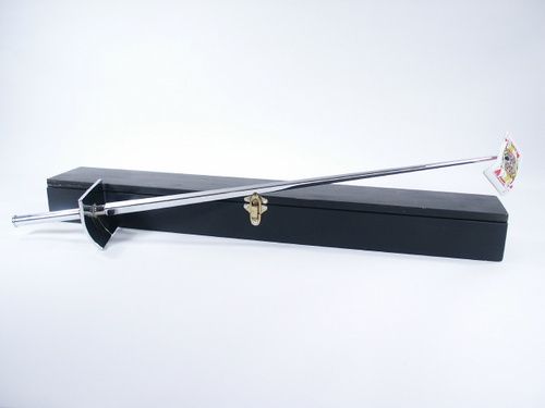 This lovely metal sword shines as you take it out and stab in mid air for a selected card or cards. Includes instructions and comes in fitted wood case. Condition very fine.