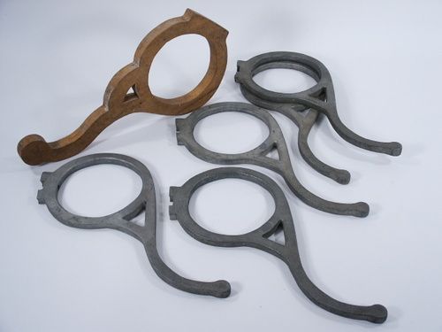 These are cast in metal and 5 in all. Also includes a wood form in similar style. Condition fine.
