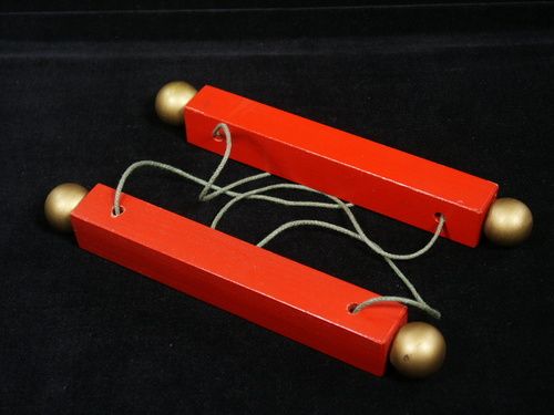 This is a scarce find as these are made of wood and measure 6 1/4" long and 3/4" square and having turned wood knobs. Either cord running through these pillars is selected by a spectator and then cut in two. The pillars are placed together and the spectator takes hold of a free end of the cut cord and pulls it free showing it completely restored! Includes instructions. Condition fine. | |