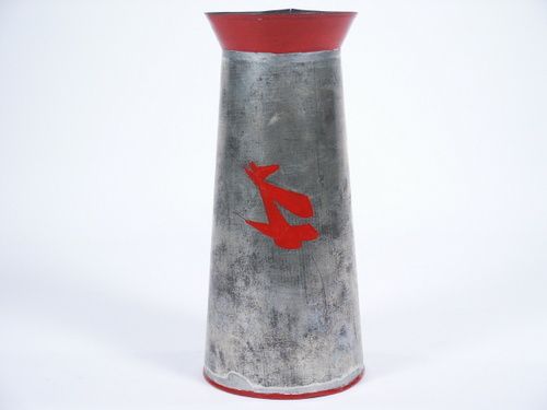 Water poured in, can inverted and water must be gone as none comes out! Made of tin and stands 7 3/4" high. Includes instructions. Condition good.