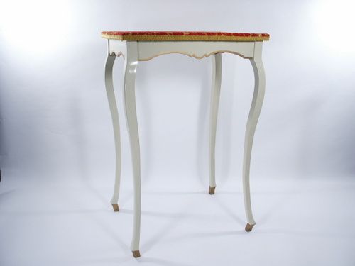 Table stands 30 1/2" high with a top measuring 14 1/4" x 20 1/4" and comes in fitted crate. Includes 2 rings of which one is pictured and the other made of copper for practice. Condition fine.