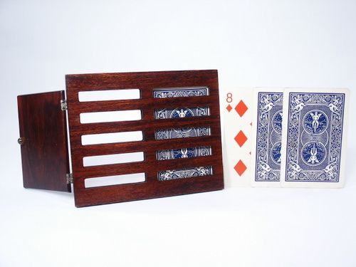 For use with the jumbo size card and made in beautiful mahogany wood. Has built in sliding sound mechanism. Includes illustrated instructions. Condition very fine.