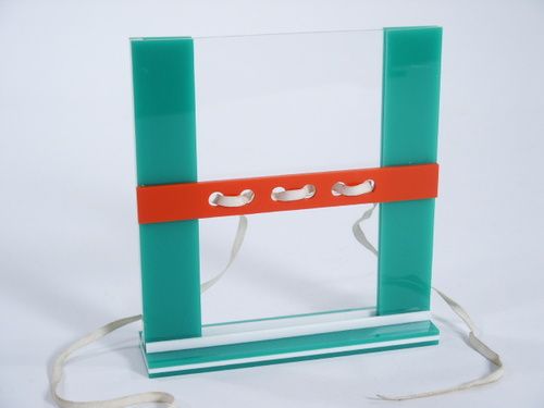 An early nicely made effect where a clear pane is laced in a frame with corresponding holes and yet the magician is able to pull the pane free! Includes illustrated instructions. Condition very good.