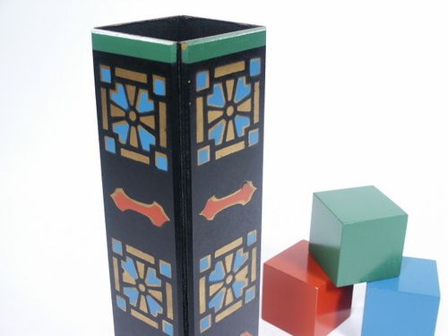 This beautiful effect makes use of 2 1/2" blocks of solid wood in 3 different colors and specially made tube as to fold flat for packing or merely to add effect during the performance.