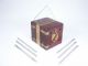 The chest measuring 5 1/8" x 4 3/4" x 4 1/2" is shown to have a slot in the top with grooves cut down the sides that will receive a solid piece of glass. The glass when placed in the box makes a partition dividing the box in the center which allows metal skewers to be inserted into the box from top to bottom and side to side running parallel in both cases to the glass.
