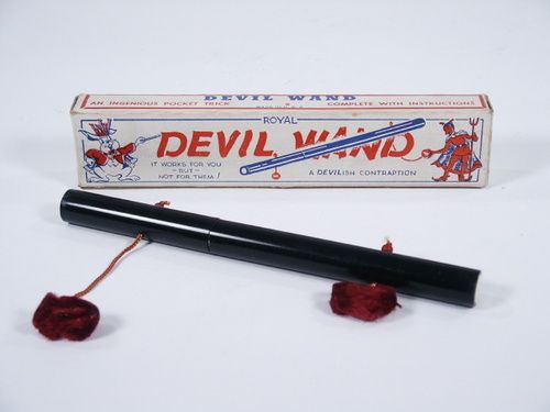 With this wand you can pull down on one cord with pom tassel and the other goes up. At any point the wand may be separated to show no connection and put back together and the same action is repeated! Another feature of this effect is that after you put the two halves back together you may hand to spectator and they cannot make it work! Includes instructions. Condition very fine.
