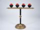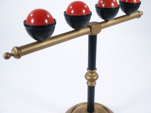 This is Thayer turning at its finest and this is not just a rack for display but rather each cup is mechanically arranged to produce or vanish a ball. Ball size is 1 3/4" and this is original Thayer through and through and hallmark stamped Thayer on the underside of base. One ball shell has had some touch up around the rim edge. Condition very fine. | |