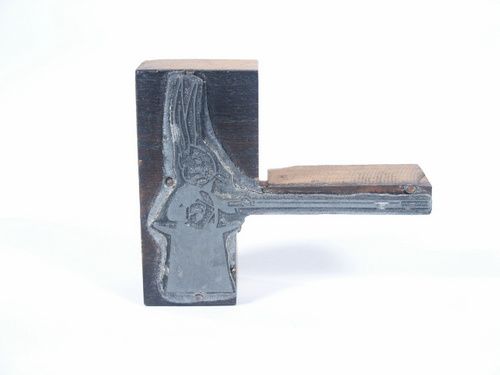Standing 2 3/8" high x 2 7/8" wide comes this charming printing block from the late 1930's. Condition good.