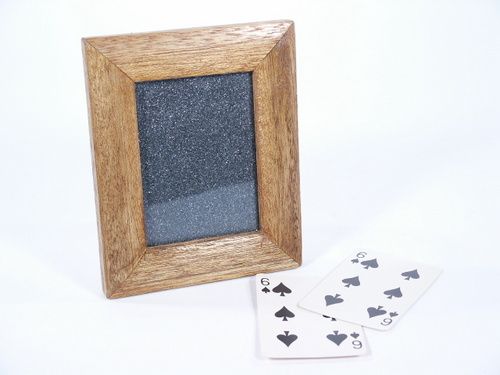 Frame is mahogany wood and glass could be sealed better to prevent escaping granules of sand. Includes instructions. Condition good.