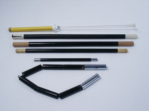 *Wood Wand with natural wood tips with magnet embedded in one tip *Wood Breakaway Wand with chrome sleeve tips and no extra steal away piece *Small Plex Wand with sleeve over metal chrome tips *Wood Wand with white enamel tips with white coming away *Wood Wand with what appears to be ivory color Bakelite tips *Walt Disney Wand from 1964 that when you install 2 AA batteries will light on the end when tipped down. Condition varies.