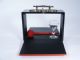 The cabinet is shown empty by lowering the front and back doors and a ball is placed in one side of the cabinet and an empty glass in the other. The doors are closed and on reopening the ball is found to be inside the glass! Includes instructions. Rubber ball replaced with sponge ball by previous owner. Condition one hinge on bottom section has had brads installed in place of original screws and not very well. Overall good condition.