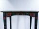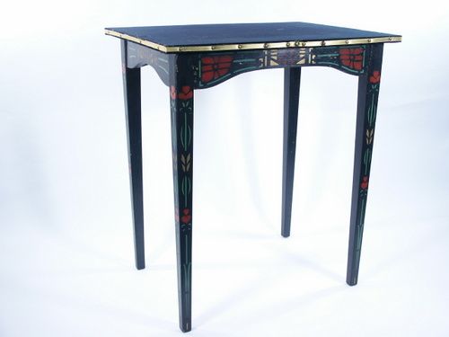 Made of wood with beautiful stencil work on apron and legs. Top measures 25" x 19" and table is 28 1/2" high. Legs are removable for packing. Some areas on table apron have dig marks into the wood and legs show little wear. Overall good condition and a rare table.