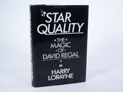 | 1987, hard bound, gilt stamping, 278 pages, illustrated. Dust jacket states: David Regal is a member of Chicago City Limits, New York's longest running comedy review. He has written and performed material for corporations across the United States and has recently developed, produced and directed programming for a new interactive technology. And says Harry Lorayne about Star Quality: “I haven't been this 'turned on' in a long time. David's magic is new, fresh, imaginative, entertaining. It will fool the hell out of you. Most of it sure fooled the hell out of me! Something for everyone, a treasury of marvelous, blockbusting and stunning effects and routines. Condition very fine. | |