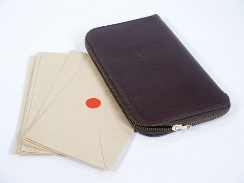 From Great Britain, 1973. Wallet is leather with zipper on three sides and includes envelopes for this impossible yet easy to perform effect.