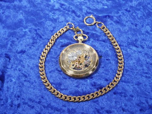 From the days of Collectors Workshop at Misty Morn Farm comes this beautiful effect where magician displays a velvet package and unwraps a handsome pocket watch, exclaiming that he was disappointed to receive it with a brief note stating "Some assembly required". The watch is just a shell with dozens of gears and parts unassembled! The magician vows to correct the problem and wraps this shell watch in the blue velvet cloth and attaches a chain to the watch handle that appears through a slit in the cloth. This he hands to a spectator with instruction to hold the chain. With the magician being able to perform miracles he pulls the cloth away revealing the watch has been fully assembled and working! In addition to the beautiful properties of the equipment supplied this you will find to be an easy effect to perform that is stunning to the audience and is convincing of your miracle worker abilities. Watch is laid over the beautiful blue cloth in photos. Condition First Rate.