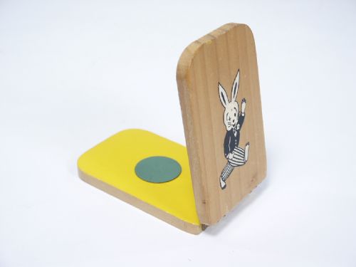 Two solid wood boards hinged on the narrow edge are shown and opened giving view to two different color spots. The boards are closed and on opening again are seen to have changed in color! The magician passes his hand over one of the spots and again a color change occurs! Both hands are shown empty. Both boards are decorated with a rabbit design. Includes instructions. Condition very fine.