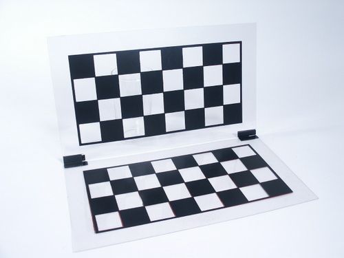 A checkerboard shown on both sides with magician saying one side is red with black squares and the other is black with red squares. Asking the audience to remember which is which quick as a flash the red squares disappear from both sides! Includes illustrated instructions. Condition fine.