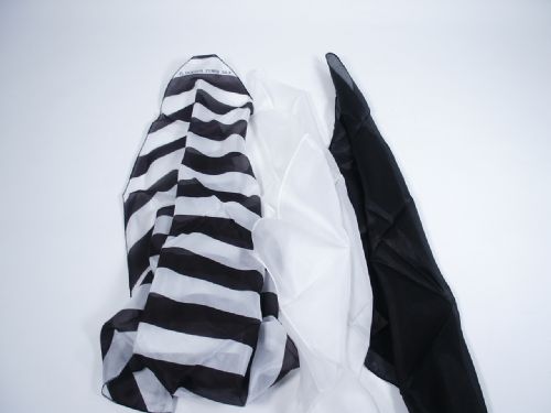 A very visual magic effect where the magician takes a black silk in one hand and a white one in the other twisting them together and with a shake they transform into a large zebra striped silk! The black silk and white silk measure 18” and the zebra silk measures 24”. Includes illustrated instructions and all silks as produced by El Duco in 1985. Condition like new.