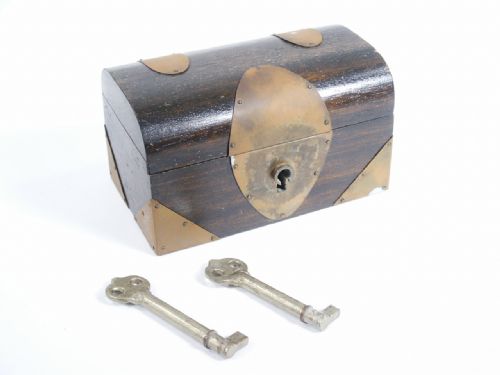 A prediction chest with billet load key and duplicate ungimmicked key. Chest measures 6” wide x 3 3/8” high x 3 1/2” deep and includes 4 pages of instructions with routine. Chest is old with brass having tarnish. Condition good.