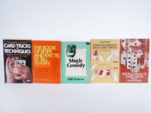 The Book Of Rope And Knots by Bill Severn, Magic Comedy by Bill Severn, Charles Jordan's Best Card Tricks by Karl Fulves, Encyclopedia Of Card Tricks by Jean Hugard, Complete Guide To Card Tricks And Techniques by Jean Hugard and Frederick Braue. Condition varies, but usually good.