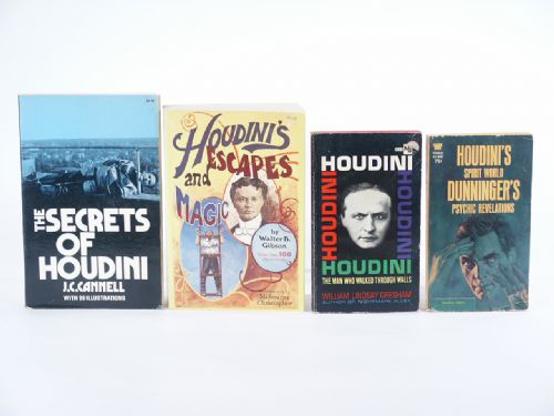 Houdini's Spirit World Dunninger's Psychic Revelations, Houdini The Man Who Walked Through Walls by William Lindsay Gresham, The Secrets Of Houdini by J.C. Cannell, Houdini's Escapes And Magic by Walter B. Gibson. Condition varies, but usually good.