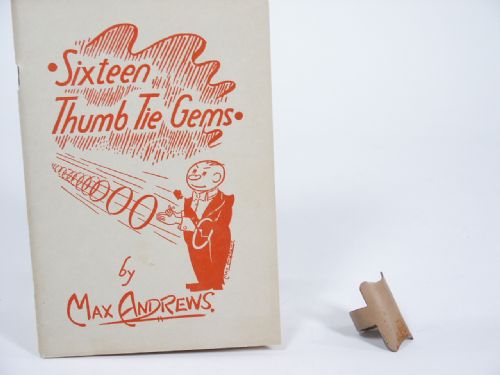 You will not likely find this well made gimmick of brass for performing the thumb tie routine. Includes Val Andrews Book "Sixteen Thumb Tie Gems", 50 pages with illustrations. Condition very good.