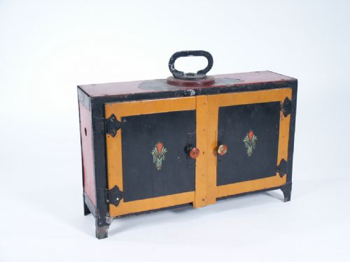 This is an original piece of mechanical apparatus once part of the great magic collection in the Circus Museum Sarasota and has the CMS mark on the underside indicating so. At the time of acquisition by Ken Klosterman a few pieces were sold this being one of them. The original owner of this piece of apparatus was Charles Larson and the name of the effect is Schlunegger's Double Cut and Color Change Ribbon Restoration. This piece also won the grand prize at the IBM 1932 Convention. Includes 4 pages of instructions. Condition small knob on backside absent. Overall condition only fair however an intriguing piece having come through several prominent collections.