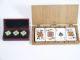 One is Number Blocks, the other a Cards Plaques Cabinet with wood plaque playing cards. The Number Block Divination makes use of a compass which is not present. Any little compass will work. The Cards Cabinet makes use of embedded magnets within the plaques so it is up to you to determine the method of divination. No instructions for either unit. Condition very good.