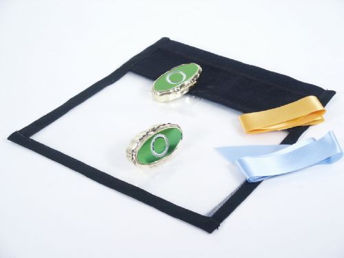 A cloth bag with a transparent window front and back is shown along with a decorative little metal box. A prediction is made on a paper and placed in the box which is wrapped with a ribbon and placed inside the bag with the end of the ribbon hanging out of the bag. Another ribbon may be used to tie the mouth of the bag closed to keep it secure if desired. If not using for a prediction it may be used as a reproduction of a borrowed signed banknote. From 1982 and includes 4 pages of instructions and in like new condition.