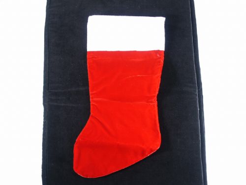 A object dropped into the stocking can either be made to vanish or changed to some other object or it may be shown empty and then toys or whatever are produced from it. The stocking is made of velvet and measures 16” in length with a width of 7 3/4”. Includes instructions. Condition unused.