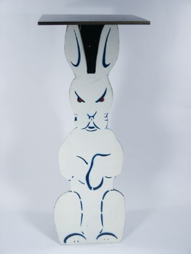 What can be more right than a magician with a table like this? This stands 32 1/2" high and folds flat for packing. The tabletop measures 13" square. Condition very good.
