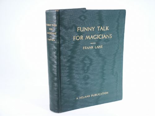 Published by Nelmar. Cloth bound with Gilt stamping, 239 pages with index. Being a complete compilation of Frank Lane's 48 Funny Talk Magazines rearranged in an alphabetical order. This talk or conversation that is required by the performer of magic or conjuring in addressing the audience. This encyclopedia of magical patter contains over 125 sketches or routines. Also 1500 miscellaneous wise-cracks, action-gags that can be used by both amateur and professional that can be inserted anywhere in any act. Condition very fine.