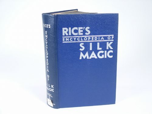 | Rice's Encyclopedia of Silk Magic: Volume 2, 1st Edition, Harold Rice, 1953, cloth bound with foil stamping, pages 522-1053, with hundreds of illustrations by Francis B. Martineau. Chapters: Penetrations, Color Changes, Color Changing Silks, Silk Dyeing, Reel Magic, Reel-less Magic and Twentieth Century Silks. A treasure of information. These early original editions are much better in quality than later ones. Condition light foxing page edges, private collection identifier label, otherwise very fine. | |