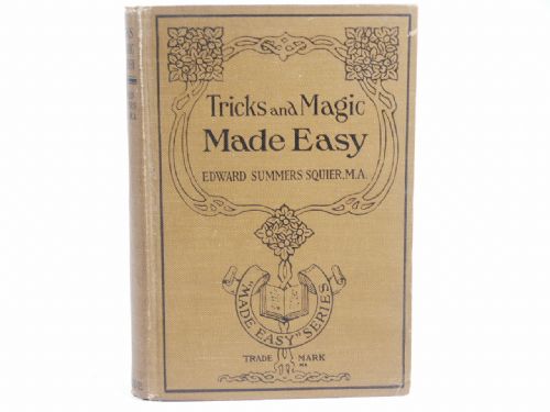 | Edward Summers Squier. M.A., 1919, pictorial cloth bound, 188 pages numbered pages, illustrated. Contents in four parts: Tricks Without Sleight-of-Hand, Sleight-of-Hand With Cards, Tricks With Coins, Watches, Dominoes, Etc., Stage Illusions. Condition light foxing page edges, front cover slight bow, otherwise very fine. | |