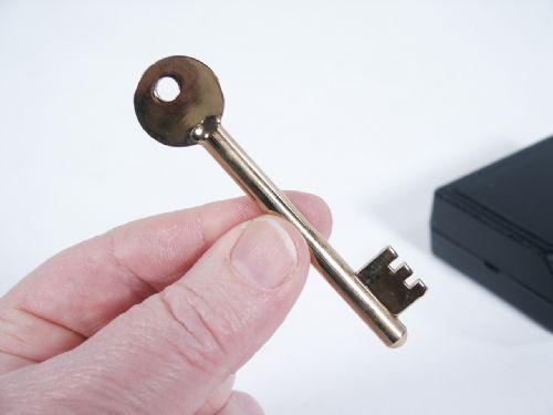 Great Britain. A normal looking key is shown and the performer is able to move the teeth of the key half way down the shaft. The teeth are then revolved so they are at right angles to the shaft and the round head of the key. Finally the teeth are brought down to the base of the key and then passed for examination! Produced in the late 1980’s and includes illustrated instructions. Includes carry case. Condition First Rate.