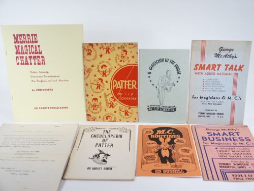 *George McAthy's Smart Talk with Added Material for Magicians & M.C.’s Published by Tommy Windsor Studio *George McAthy’s Smart Business for Magicians & M.C.’s Book 2 Published by Tommy Windsor Studio *Patter by Sid Lorraine *A Magician In The House by Sid Lorraine *The Encyclopedia Of Patter by Robert Orben *Ninety-Nine Tips & Gags Published by Abbott’s *M.C. Routines by Ed Dunhill *Merrie Magical Chatter by Don Rogers Published by Abbott