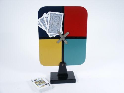A card is predicted in any way you wish. You can write it down in view of the audience before starting the effect; you can mail it in a sealed envelope to the promotor of the show days before; or you can make the prediction in the classified ads of the local newspaper. The deck of cards is shuffled by a spectator. Sixteen cards are then taken from the shuffled deck and placed upon the stand, four cards under each clip, all backs out. The performer then says that he will eliminate 15 of these cards and to prove that he does not use a confederate, he will have them eliminated by six different spectators. The first spectator names a color and the cards on this color are discarded. This is repeated with two other spectators, so only four cards are left on the board. These four cards are taken, mixed up and redistributed on the board, one card under each clip. Again three other spectators each choose a color and there are eliminated so only one is left. When this is turned around it proves to be the very card which the performer predicted! You may do this only using a couple of spectators if several are not available. With this set up, two different outcomes are possible. Includes 2 pages of instructions. Very easy to do. Condition fine.