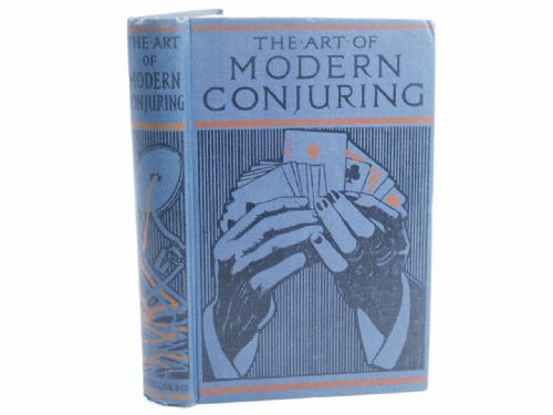 | The Art Of Modern Conjuring And Drawing Room Entertainment, Publisher Ward, Lock & Co. Limited, London and Melbourne. Fully Illustrated With Photographic Plates with nearly 200 illustrations from photographs. Circa 1910, pictorial cloth bound, 222 pages with photo plates and illustrations plus ads. Authorship credit is stated "By a Modern Magician". Chapters on: Introductory Hints, The Dress Servantes, Pulls And Apparatus, Card Tricks, Coin Tricks, Handkerchief Tricks, Tricks With Chemicals, Parlour Tricks, Hat Tricks, Mesmeric And Magnetic Tricks, Advanced Tricks (Birds shot from a bag into a cage, Conjurer's Pistol, Colour-Changing Billiard Balls, Fire Eating, Flying Bird-Cage to name a few), Miscellaneous Tricks (Glove and Head, False finger for palming or producing, Magical Key and Ring, Optical Illusion with A Ring, A Watch and an Monkey to name a few), Tricks With Matches And Numerals, Shadowgraphy, Second Sight, Programmes, List Of Illustrations. Some quite unusual items will be found within such as to change the complexion from white to black and to displace water by smoke. Condition previous owner’s signature on front flyleaf, otherwise very fine.