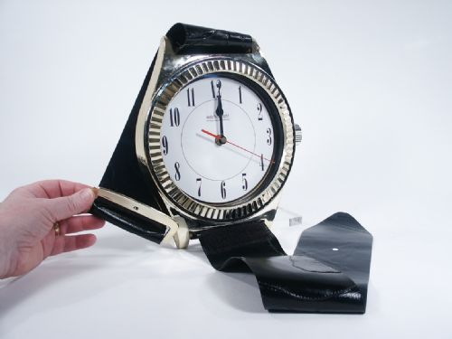 A startling production of a real working giant size wristwatch that is 9 1/2” in diameter. Throughout the performance the magician shows his own wristwatch after saying watch! It is quite a surprise when this giant size wristwatch is produced! Includes 2 pages of instructions. Condition very fine.