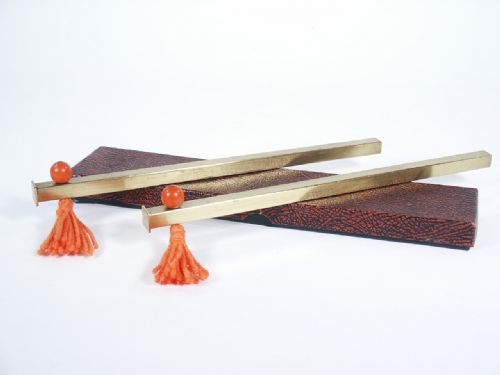 This lovely set in the original box measures 10" in length with a post size of 10 mm. Not often do you see fine items from Zauber Klingl of Austria. Condition very fine.