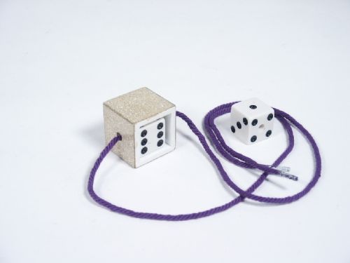 Kenard's Mystery Die was a popular trick where a die placed in a frame and threaded with string would escape under the watchful eyes of spectators. Housing is glitter plex finish and Includes the Kenard instructions. Condition very fine.