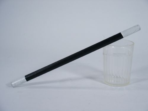 This is very clever by arrangement as first the wood wand measuring 12" in length is held vertical suspended on outstretched open hand. Going one step further a glass is lifted up to the end of the wand and now it stays suspended as well! No instructions but you will be able to understand with props in hand. Condition very fine.